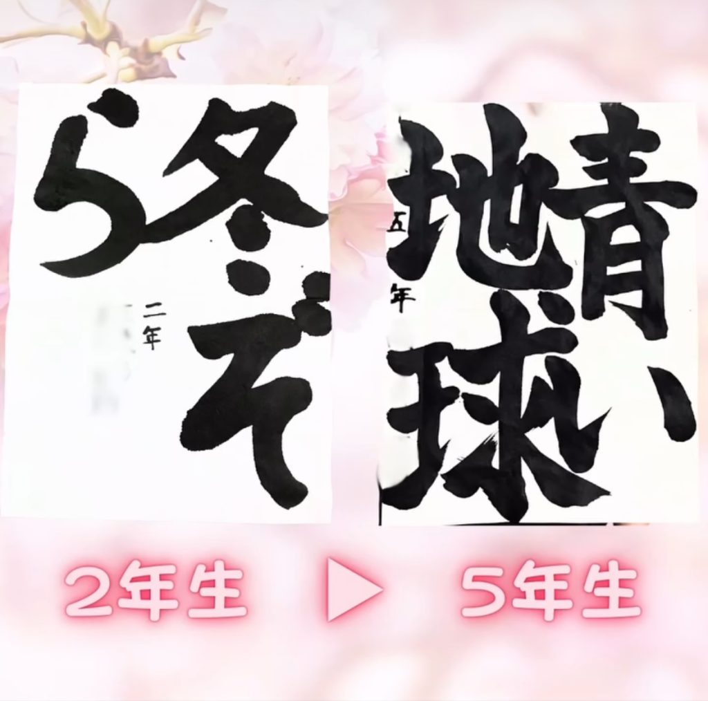 同じ生徒さんの過去の作品と現在の作品とを比較してみました。3年も前の作品もあります👀 起筆と終筆、筆の立て方、字形など、みなさんの成長を随所に感じます✨ 函館の書のアトリエATELIER SAKURAさくら書道教室 -