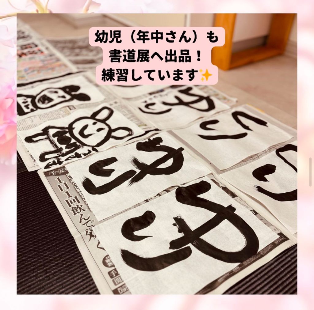 さくら書道教室では幼児さんは毛筆の練習だけではなく書道展へも挑戦することができます。 ※幼児さんには左利きの子もいますが、書道教室では自然と右手で書けるようになっています✨ 小学生に比べ、やはりまだ集中力が途切れやすいですが、集中する時には...